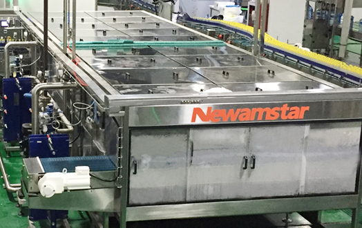 Low-temperature filling is used for carbonated beverages (usually at 4-10 °C), but the room temperature in summer is much higher. In such environment, the moisture in the air can easily condense into dew on the outer surface of the bottle body. This brings inconvenience to follow-up packaging and operations such as labeling. In particular, if the carton is used for packaging, the dew can easily wet the paperboard, which can be damaged seriously. Therefore, a bottle warmer must be installed after the filling machine to heat the bottle to room temperature. The bottle warmer is a tunnel type spray equipment. It heats the bottle through heat exchange of circulating hot water and has three temperature zones (more warm zones can also be designed). After section heating, the temperature of the beverage center reaches room temperature. Dynamic transition is adopted at the import and export of the bottle warmer in order to reduce the squeeze on the inverted bottle sterilization machine and manual intervention.