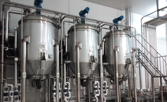 Blending system refers to the equipment combination that the various raw and auxiliary materials and process water are extracted or dissolved by various process units according to the pre-determined process parameters, and then mixed and fixed to obtain semi-finished products; its main modules include hot water unit, saccharose filter sterilizing unit, juice/tea powder reconstitution unit, auxiliary material dissolving unit, tea extracting and filtering unit, powdered milk reconstitution mixing unit, blending constant volume unit, CIP cleaning unit, pipe unit, electrical control and central control units.