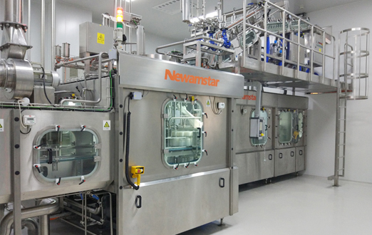 Ultra-Clean Blowing-Filing-Capping Combiblock integrates functions of blowing, disinfection, cleaning, filling and capping to ensure the health and safety of beverages. The technology can be divided into ultra-clean hot filling (82-92 °C), ultra-clean medium temperature filling (68-75 °C), ultra-clean normal temperature filling (16-35 °C), ultra-clean cold filling (4- 15°C).